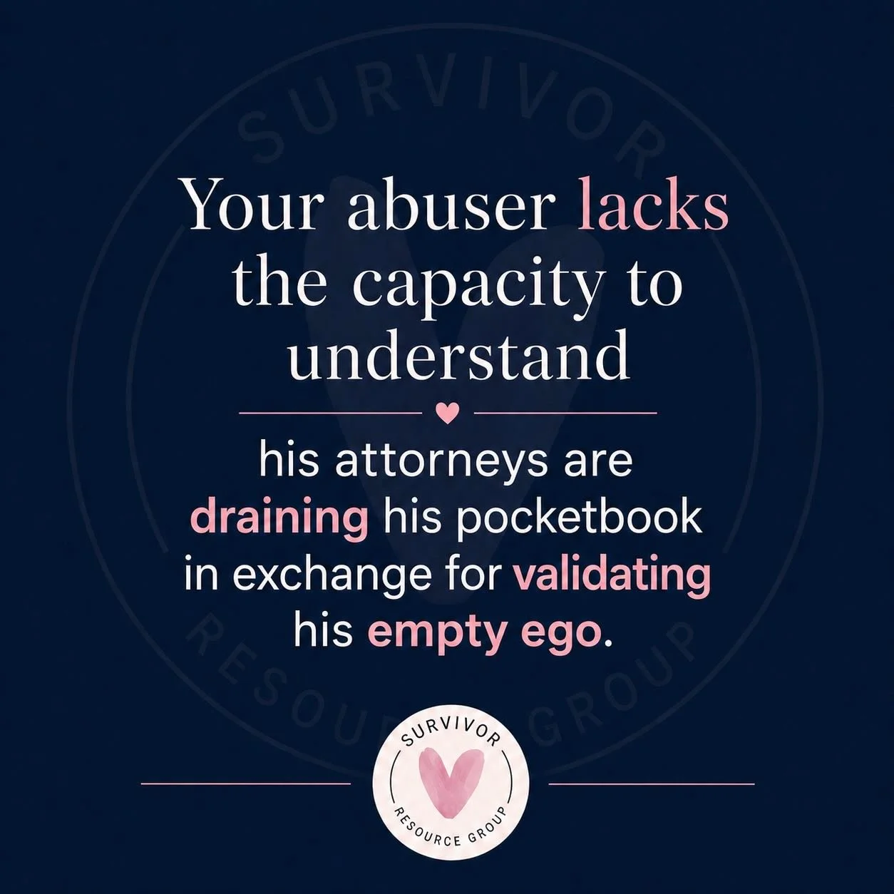 Survivor Resource Group is strategic in its mission to improve outcomes for survivors and children through wraparound support during custody evaluations and court proceedings. We organize evidence, draft narratives, and coach survivors throughout the evaluation process. In addition, we work with attorneys and experts on ways to present coercive control in court especially where financial and litigation abuse are present. Finally, we seek to educate family court professionals, attorneys, and other agencies on how coercive control and domestic abuse impact children.